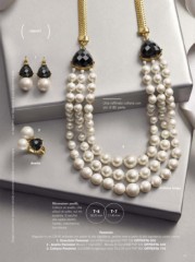 Bagnato in oro (24 K) brillante con pietre di alta bigiotteria, perline nere e perle di alta bigiotteria colore crema.