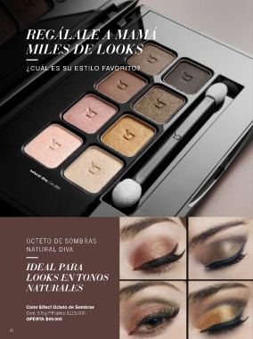REGÁLALE A MAMÁ MILES DE LOOKS ¿CUÁL ES SU ESTILO FAVORITO? natural diva Cód.880 OCTETO DE SOMBRAS NATURAL DIVA IDEAL PARA LOOKS EN TONOS NATURALES Color Effect Octeto de Sombras Cont. 5.6 g P.Público $115.000 OFERTA $69.000 82