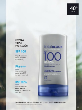 Total Block SPF 100 Cont. 80 g Cód. 331 P.Público US$37.- OFERTA US$22.-