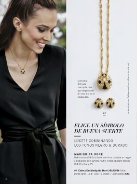 y traslúcido, con esmalte negro. Aretes en baño dorado
